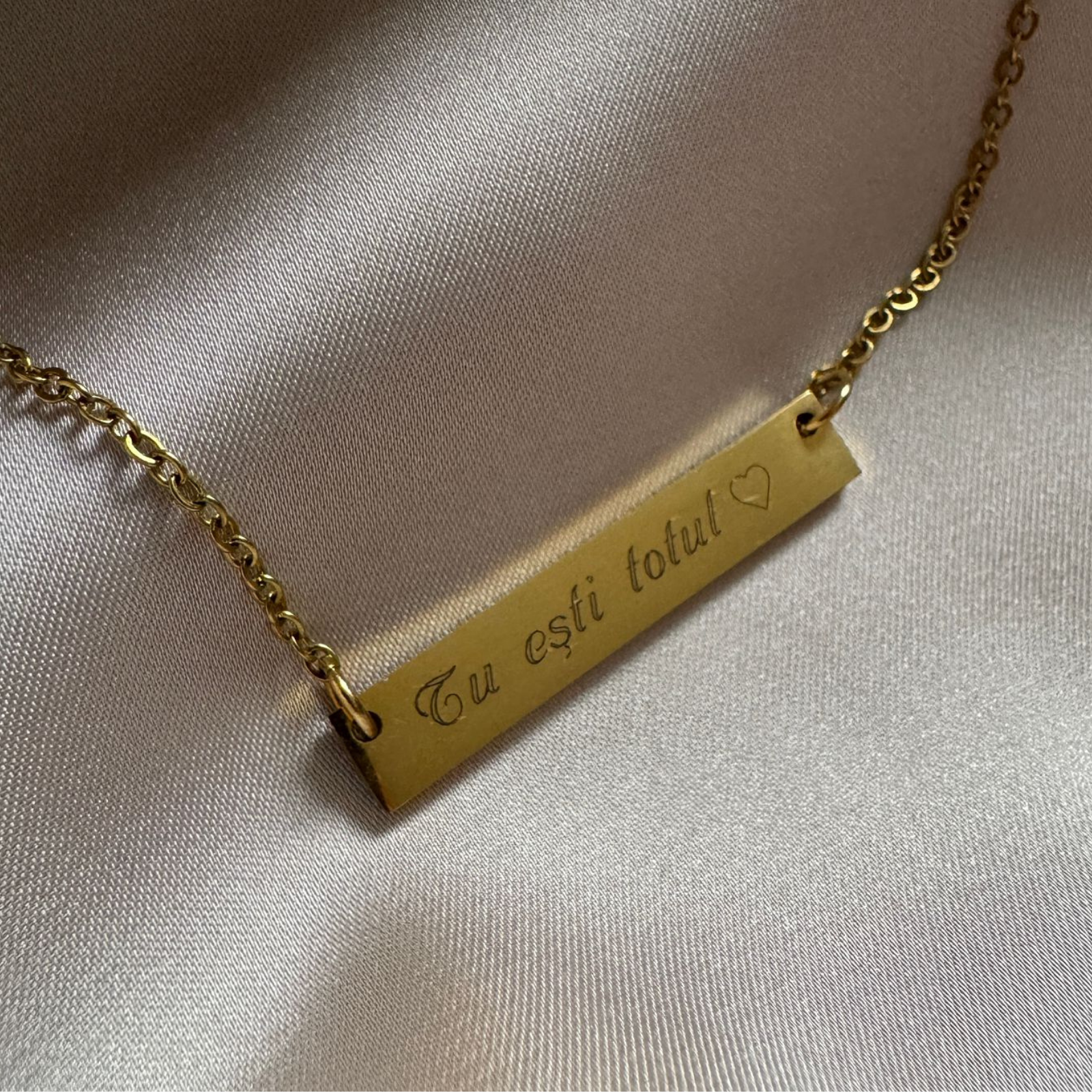 Lănțișor elegant din inox auriu, personalizat cu mesajul tău pentru totdeauna.