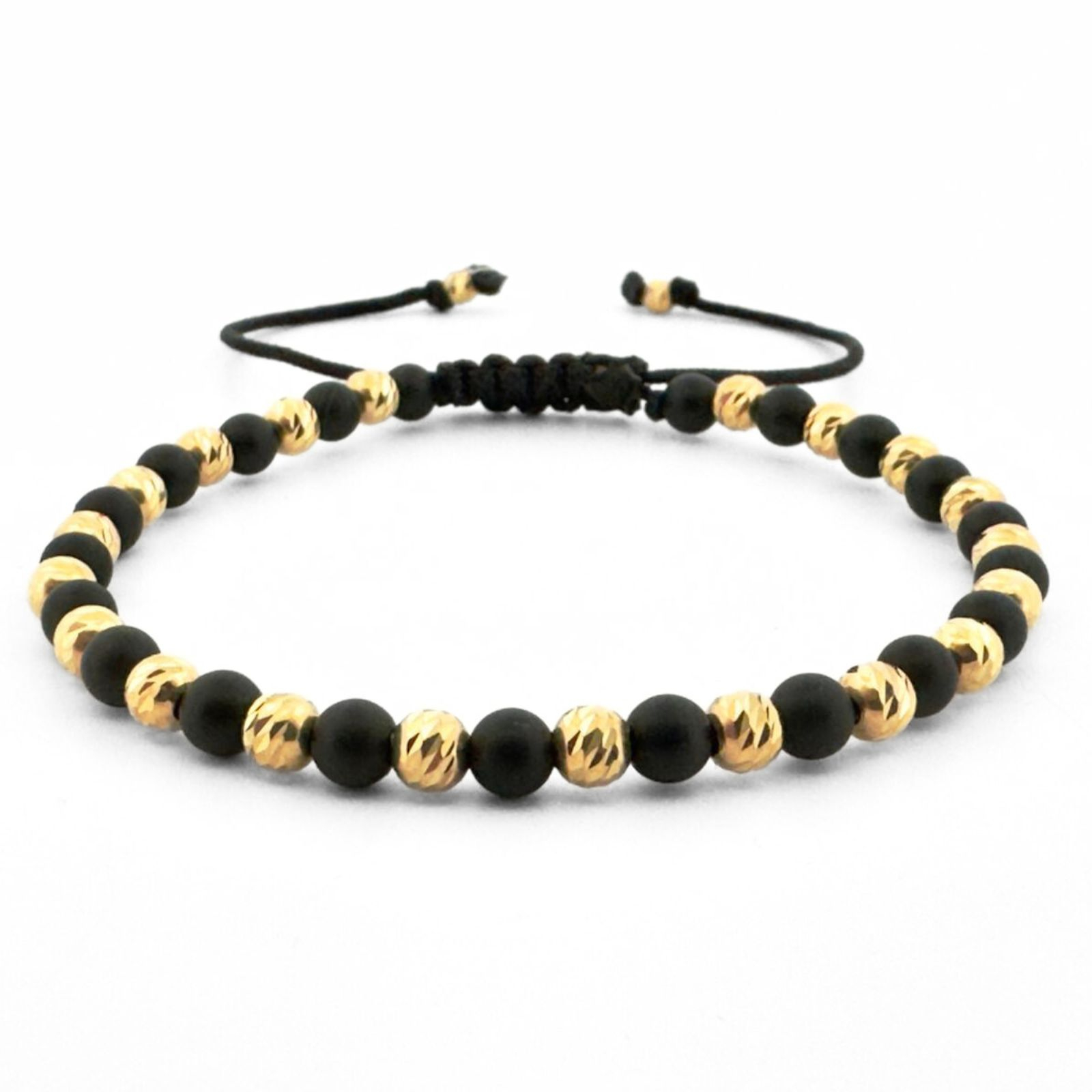 Brățară cu Onix Mat 4 mm și Biluțe din Argint 925 Placate cu Aur 18K 4 mm – Brățară Reglabilă cu Stil Modern și Versatil + CADOU