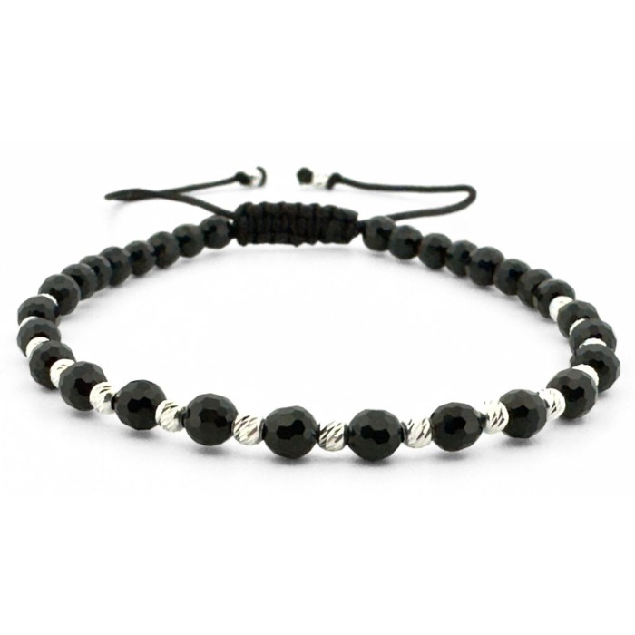 Brățară cu 17 Biluțe de Argint 925 și Onix Negru Fațetat 4 mm – Protecție, Echilibru și Claritate