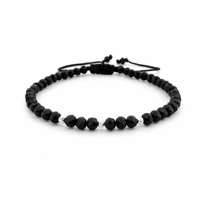 Brățară unisex elegantă cu biluțe din argint 925 și cristale de sticlă rondele, reglabilă.
