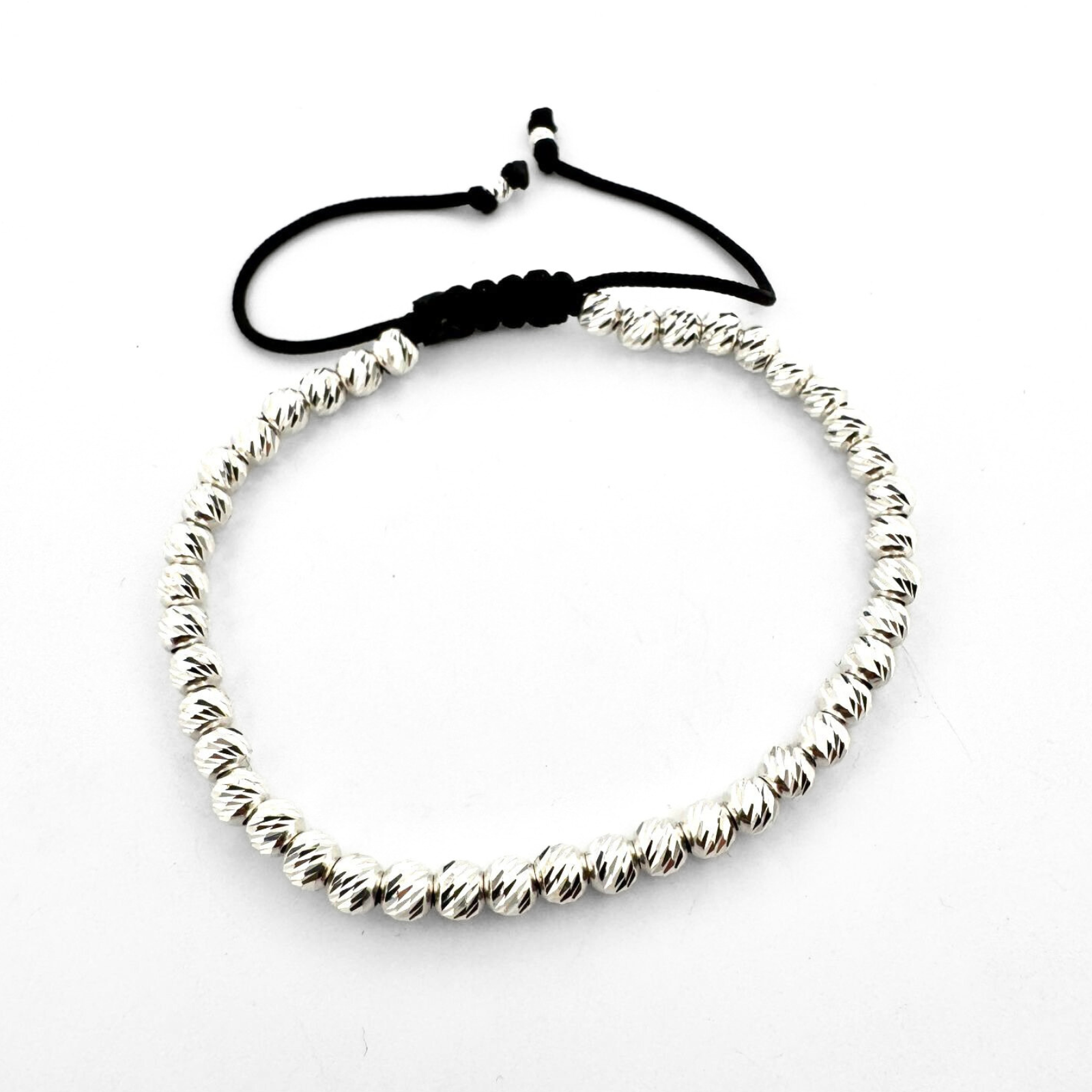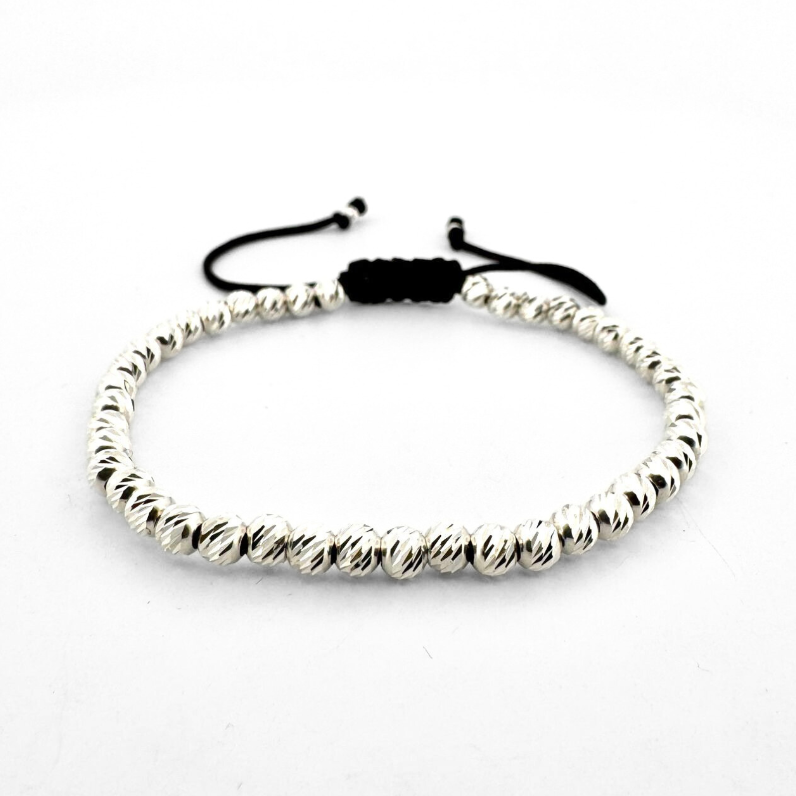 Brățara conține minimum 42 de biluțe din argint 925 de 4 mm (variază în functie de marime), completate de 2 biluțe de 2.5 mm la capetele șnurului. Fiecare piesă este finisată manual, cu atenție la detaliu, pentru un aspect uniform și o rezistență de durată.