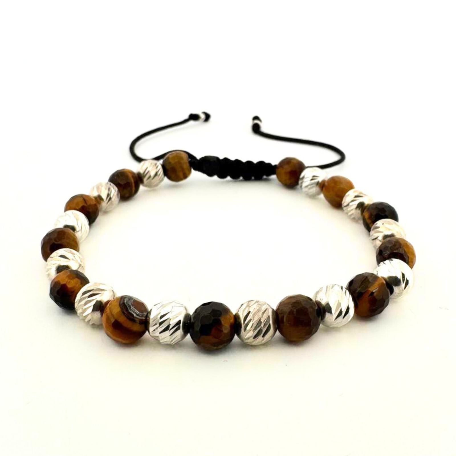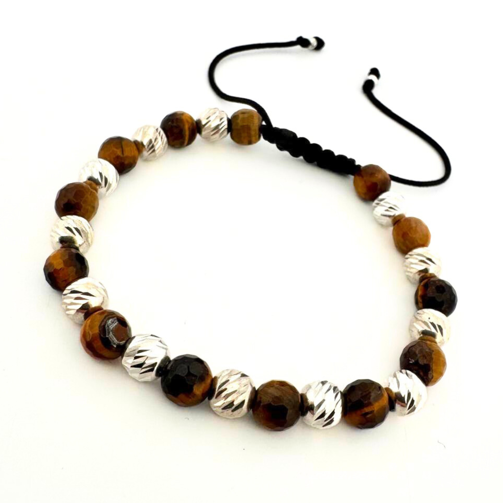 🤎 Brățară cu Ochi de Tigru și Biluțe de Argint 925 de 6 mm – Putere, Încredere și Echilibru Interior