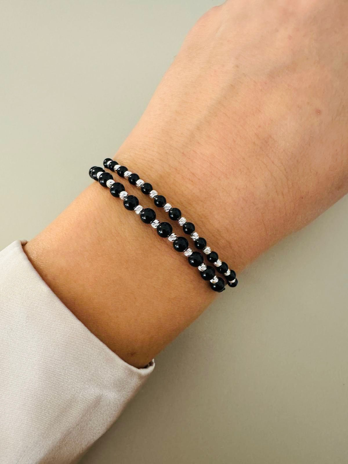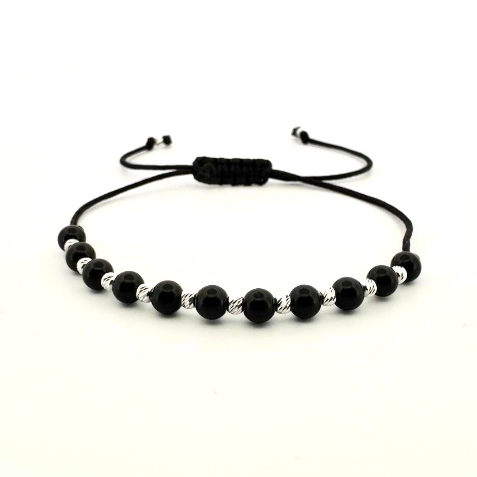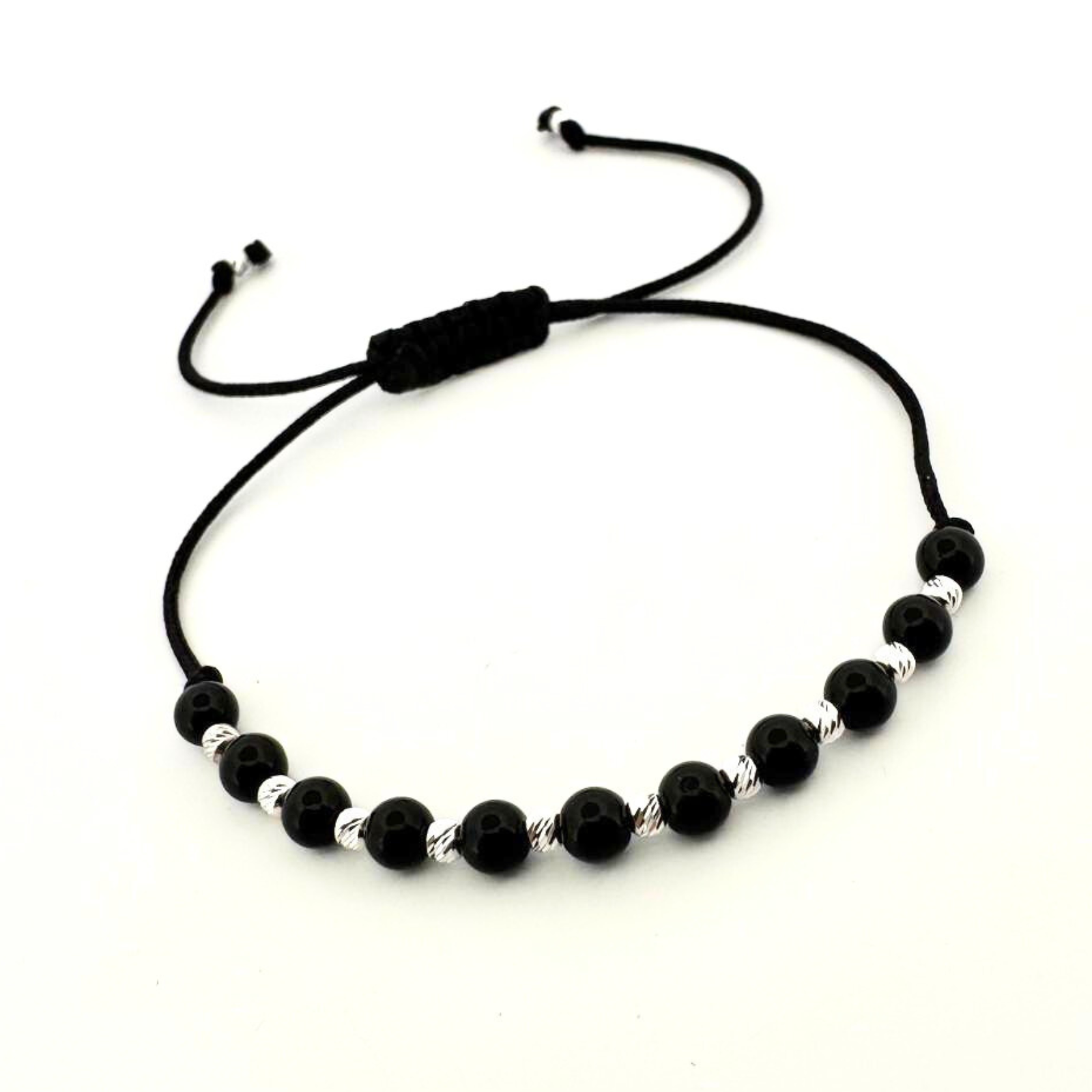 O brățară ce poartă echilibrul dintre energie și eleganță. Creată din onix natural și argint 925, această bijuterie este simbolul forței interioare, al rafinamentului discret și al încrederii în propriul drum. Onixul, piatra curajului și a protecției, aduce stabilitate, claritate și o energie calmă, potrivită celor care vor să poarte un accesoriu cu sens.
