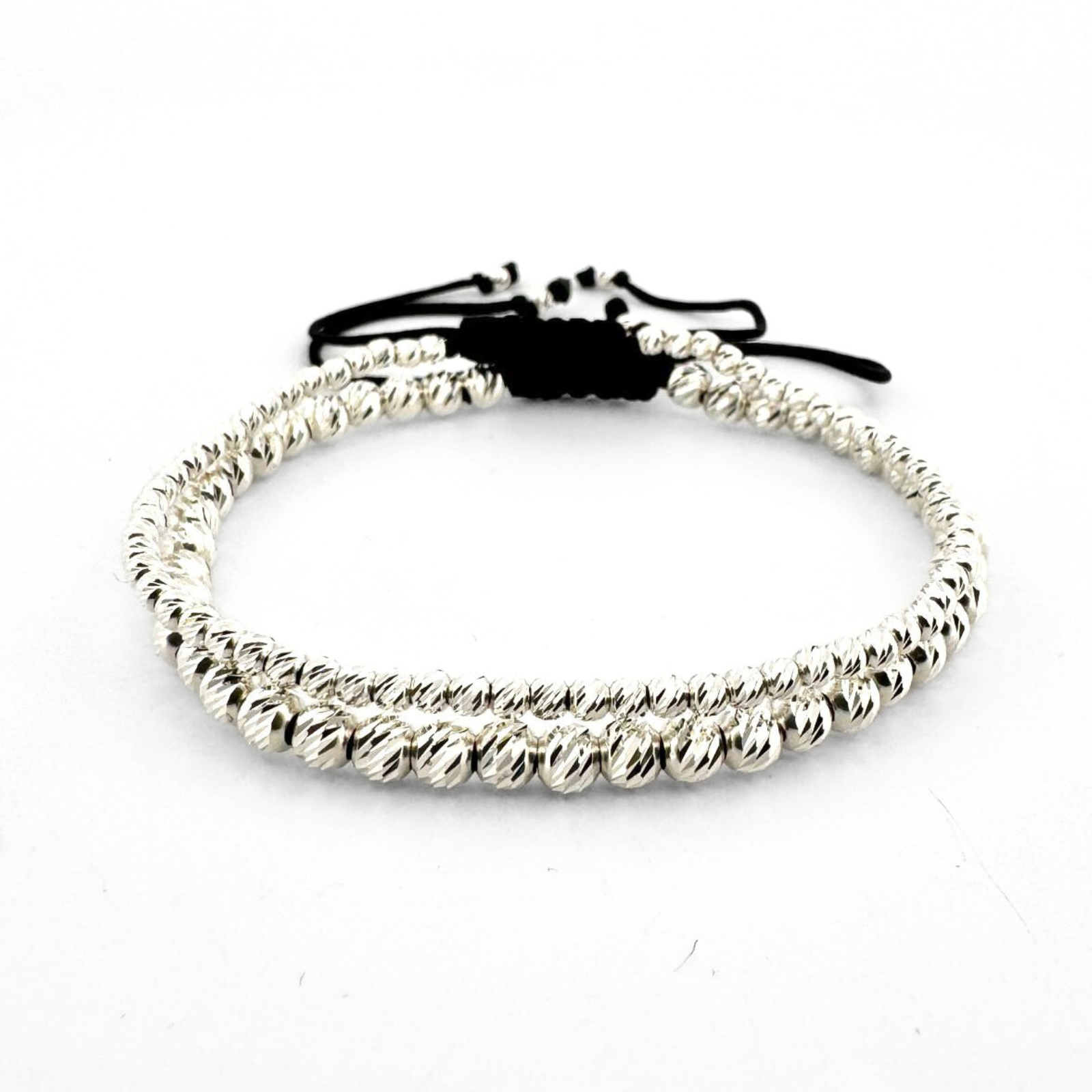 Set de două brățări din argint 925, realizate manual – una cu biluțe de 2.5 mm și una cu biluțe de 4 mm, ambele cu șnur reglabil. Un simbol al conexiunilor autentice, perfect pentru cupluri, prieteni sau persoane dragi.